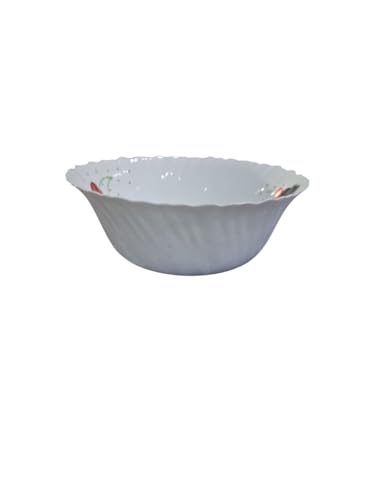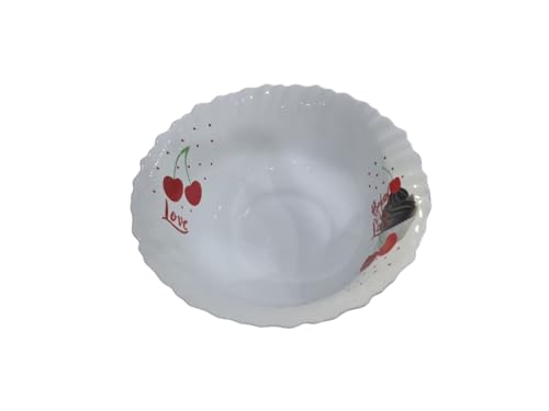 Generic - بولة للشوربة زجاجية مزخرفة بتصميم حب الكرز، لون أبيض، حافة صدفية متعددة الألوان