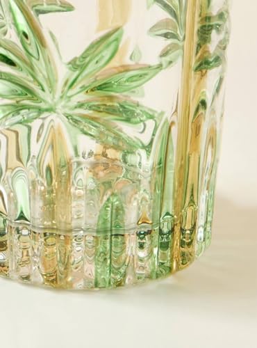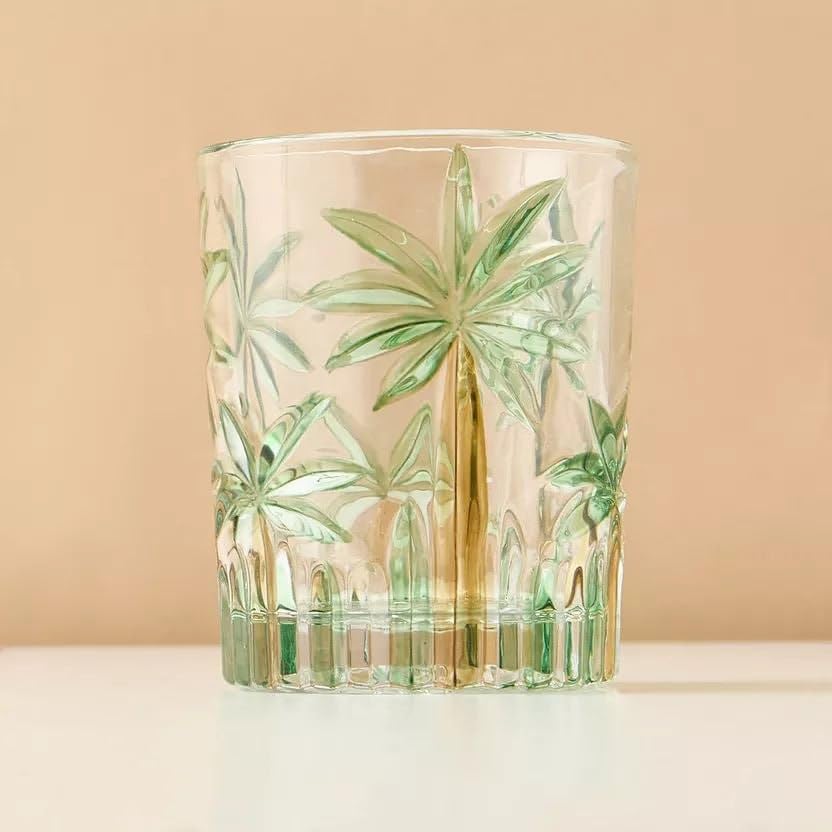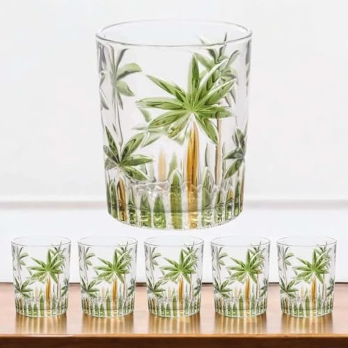 Generic - اكواب زجاجية مزخرفة بتصميم شجرة النخيل، مجموعة من 6 قطع، شفافة مع لمسة خضراء وبرتقالية، عالية الجودة، للمشروبات الباردة (مستوردة)