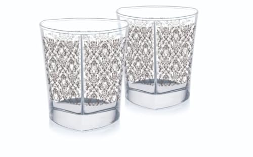 Generic - اكواب زجاجية مزخرفة بنمط دمشقي فضي، مجموعة من 6 قطع، شفاف