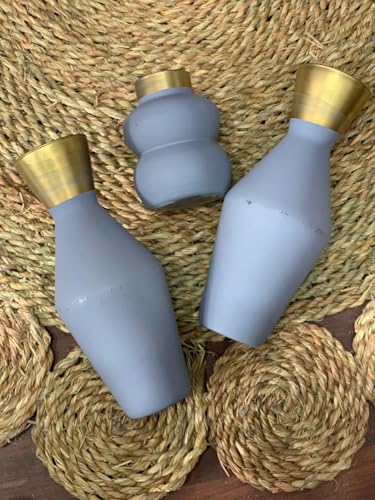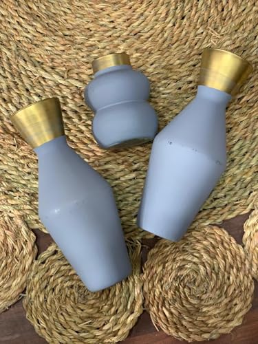 Generic - مجموعة فازات زجاج ديكورية من 3 قطع بلمسة ذهبية – فازات تزيين مودرن للطاولات وغرفة المعيشة – ألوان فيروزي وبنفسجي (بنفسجي غامق)