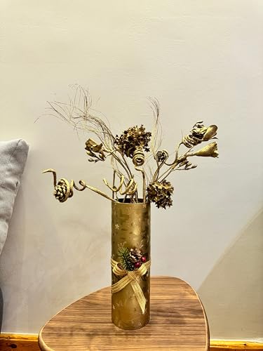 - تصميم أنيق: تنسيق زهور مجففة مذهل بلون ذهبي يتميز بسيقان وأزهار معدنية، تكملها بشكل مثالي مزهرية معدنية أنيقة