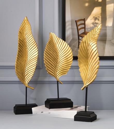 - تصميم أنيق: مجموعة من 3 منحوتات أوراق معدنية ذهبية اللون مثبتة على قواعد سوداء، مما يخلق لمسة زخرفية عصرية مذهلة لمنزلك