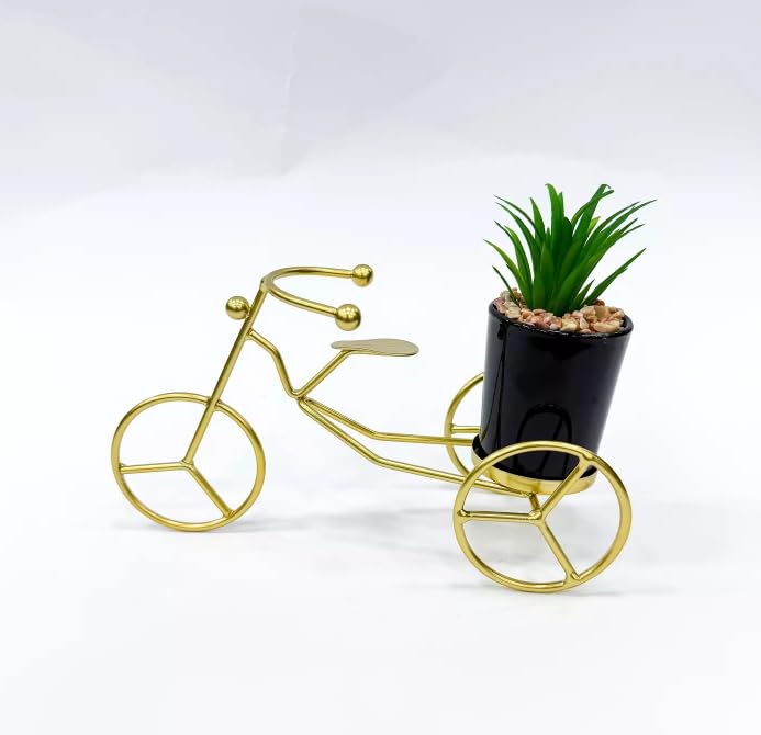Generic - حامل نباتات معدني ذهبي مزخرف للدراجة، حامل نباتات عصري بنباتات صناعية، ديكور منزلي عصري