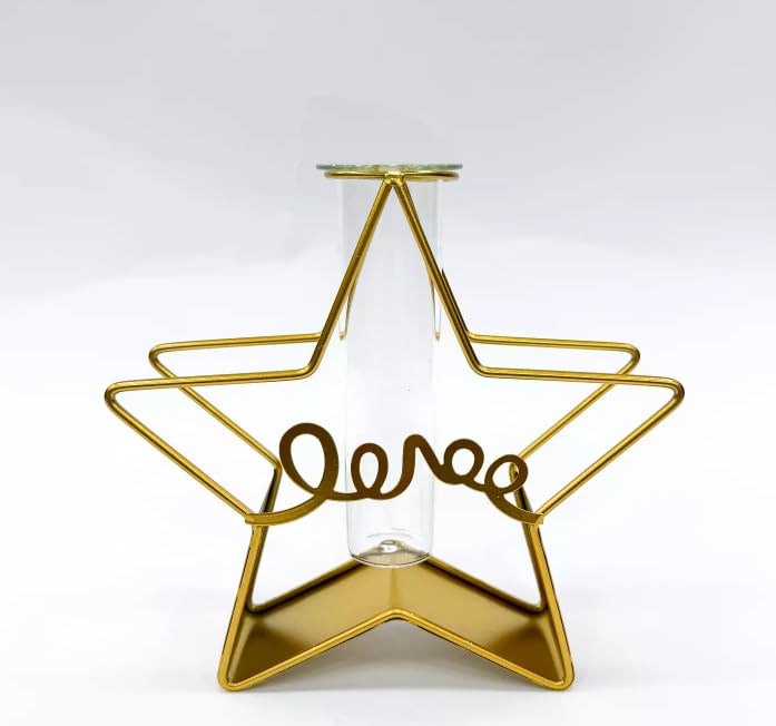 Generic - حامل فازة ذهبي بشكل نجمة مع أنبوب زجاجي، إطار سلكي بتصميم عصري لديكور المنزل