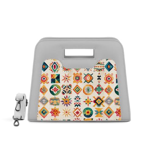 Generic - شنطة يد مزخرفة بزخارف هندسية، قماش رمادي وابيض، نمط بوهو