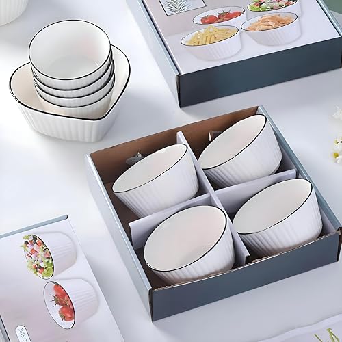 Generic - مجموعة أطباق مزخرفة من السيراميك على شكل قلب - مثالية لتقديم الحساء والأرز والنودلز والفواكه، مناسبة للاستخدام المنزلي والتجاري، آمنة للاستخدام في الميكروويف، 5 قطع