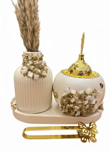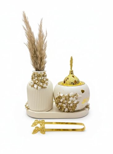 Generic - مبخرة ديكور وحامل بخور أنيق طقم 4قطعة تناسب جميع الديكورات ديكور فريد لجلسات الاسترخاء أجواء ترحيبية لمسة فاخرة للغرف والرسيبشن والمكتب