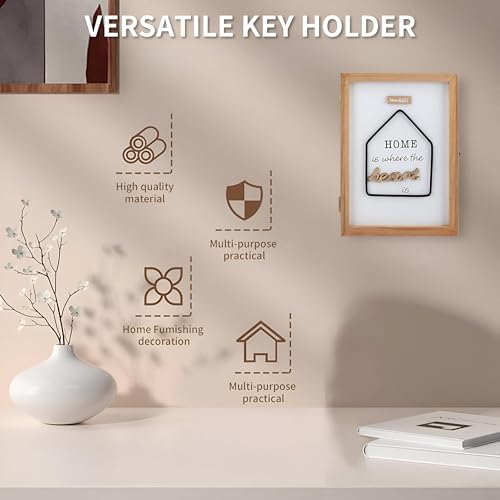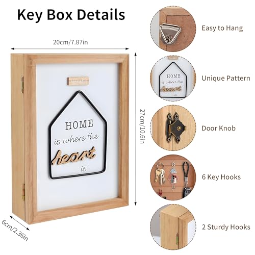 Generic - حامل مفاتيح مزخرف وصندوق مفاتيح خشبي موفر للمساحة مع 6 خطافات مدمجة للتثبيت على الحائط وتنظيم ديكور مدخل المنزل والمكتب والردهة