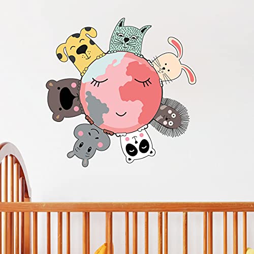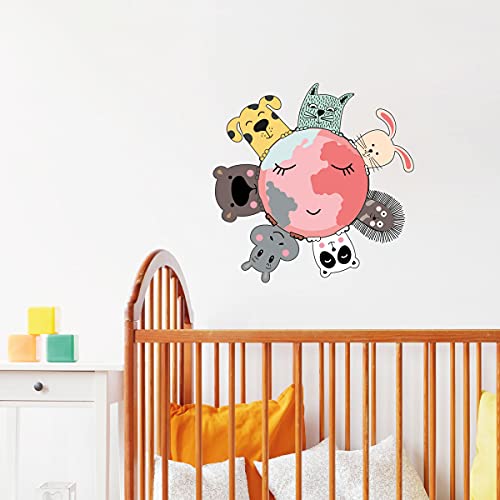 Generic - ملصق ديكور لغرفة الأطفال - حيوانات حول الأرض (60 × 60 سم)