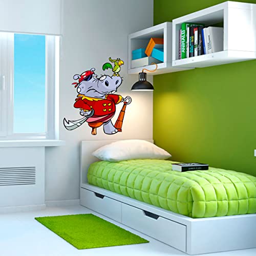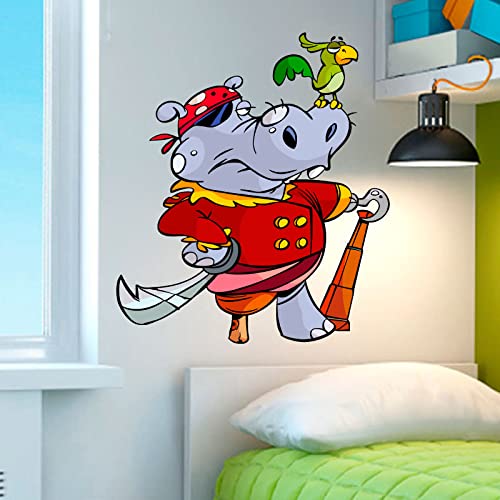 Generic - ستيكر لاصق لتزيين غرفة الأطفال على شكل قرصان فرس النهر وببغاؤه (60×70 سم)