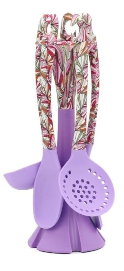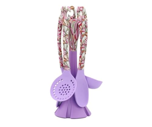 - مجموعة كاملة: مجموعة أدوات المطبخ المكونة من 6 قطع تتضمن ملعقة سباتولا وملعقة مخرومة ومصفاة، تتميز جميعها بمقابض جميلة بنمط زهور