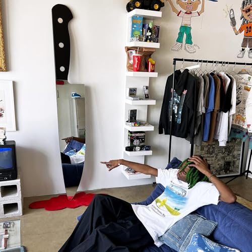 - تصميم فريد من نوعه: مراية الحائط اللافتة للنظر على شكل سكينة تضيف لمسة جريئة وديكور فني مميز إلى غرف النوم أو غرف المعيشة أو المطاعم أو المقاهي أو المساحات الإبداعية.