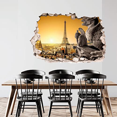 Generic - ملصق ديكور للمناظر الطبيعية - برج ايفل وكيميرا نوتردام دي باريس (100 × 150 سم)