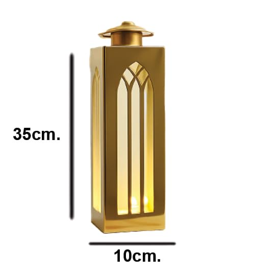 Generic - فانوس ديكور، ذهبي، معدن، ارتفاع 35 سم، تصميم قوس قوطي، متوافق مع الضوء