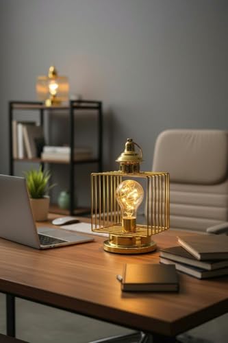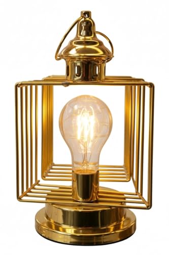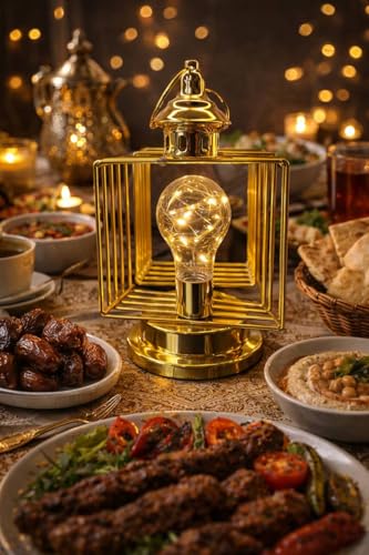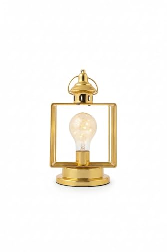 Generic - فانوس ديكور معدني ذهبي بإضاءة ليد دافئة تصميم عصري أنيق للمنزل والبلكونات ومائدة الإفطار وديكور رمضان ولمسات ديكور راقية