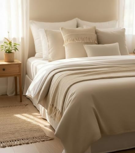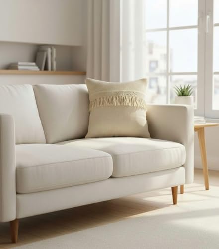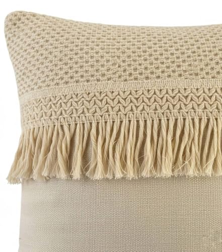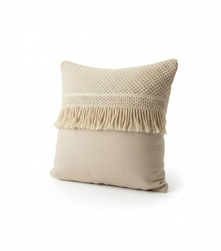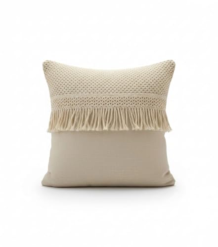 AREXOL - كوشن كتان تقيل للديكور بمقاس 45 × 45 سم تصميم مكرامي فاخر للكنب والكراسي مع سوستة مخفية يضفي لمسة طبيعية وعصرية على غرفة المعيشة والنوم