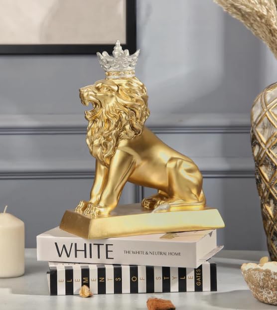 - تصميم فاخر: منحوتة أسد ذهبية مصنوعة بشكل رائع مع تاج ملكي، يجسد القوة والفخامة في كل التفاصيل