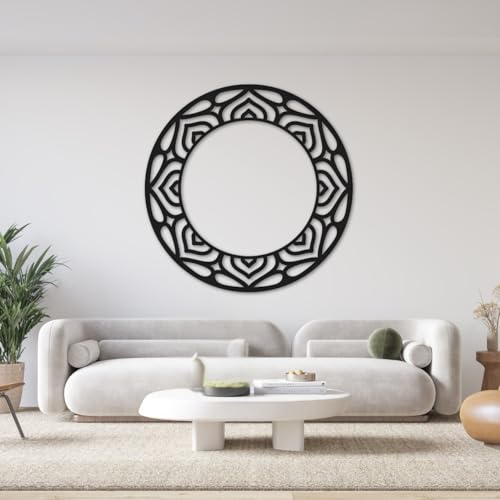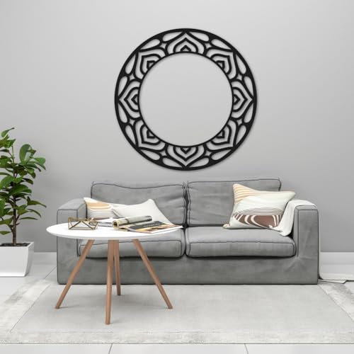 Generic - لوحة فنية جدارية مزخرفة على شكل قمر من ام دي اف بلون اسود، نمط ماندالا، مقاس كبير 80 سم، ديكور منزلي داخلي، تصميم هندسي (مقاس M)