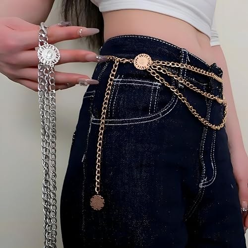 Generic - دلايات ميدالية مزخرفة - قلادات فاخرة ذهبية اللون تتدلى من حزام سلسلة مرن، تعزز خطوط الخصر بأناقة بوهيمية وملاءمة قابلة للتعديل لجميع أنواع الجسم.