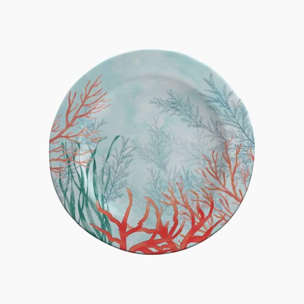 Generic - طبق عشاء ميلامين مزخرف بتصميم مرجاني وأعشاب بحرية، 25 سم، اكوا بلو