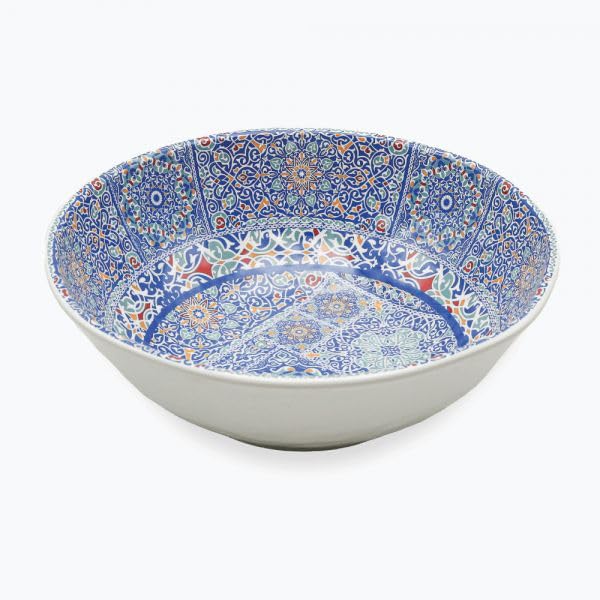 Generic - وعاء تقديم ميلامين مزخرف بنقشة فسيفساء باللونين الأزرق والأحمر، طبق عميق كبير