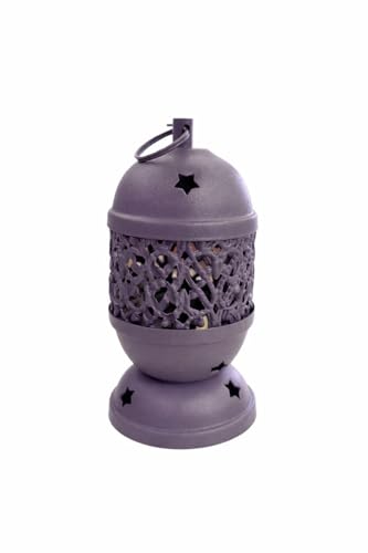فانوس معدني زخرفي بتصميم مخرم، لون رمادي، مع حلقة تعليق، نجوم، ديكور منزلي