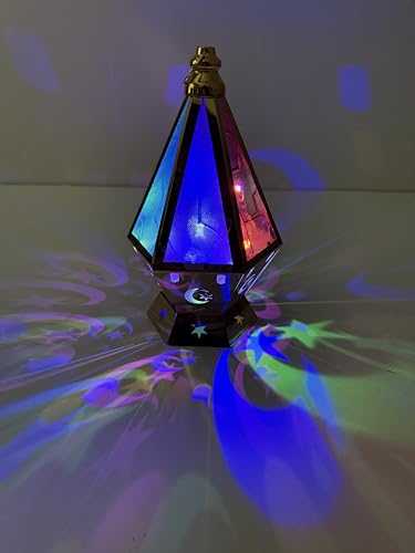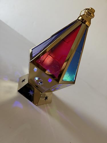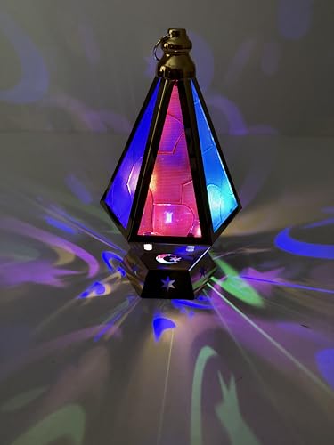 Generic - فانوس رمضان معدني مزخرف بضوء ليد متغير اللون ولمسة نهائية ذهبية، تصميم قمر ونجوم