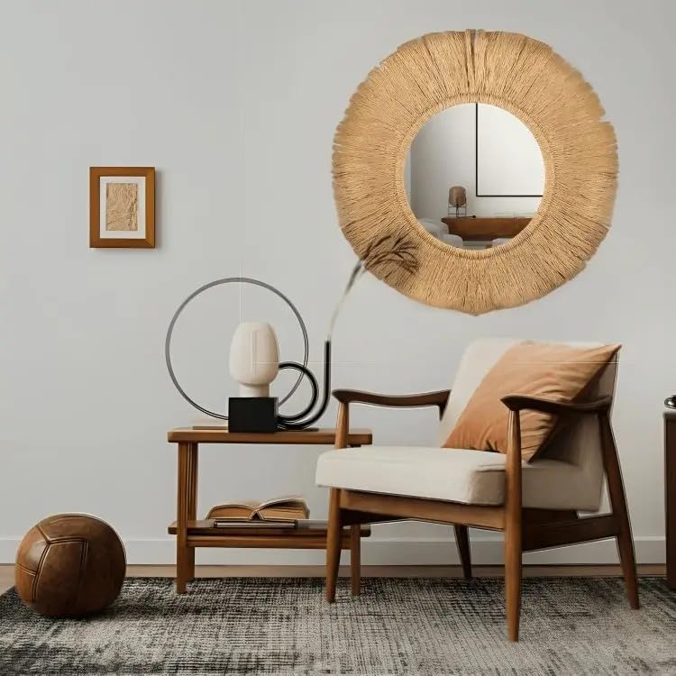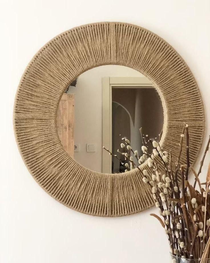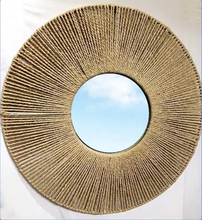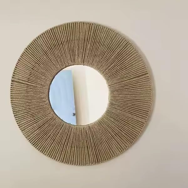 - قوية: تصميم معاصر وأنيق لمرايا الديكور بإطار حبل طبيعي كتان.