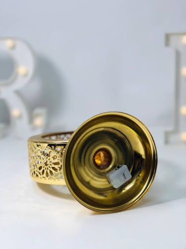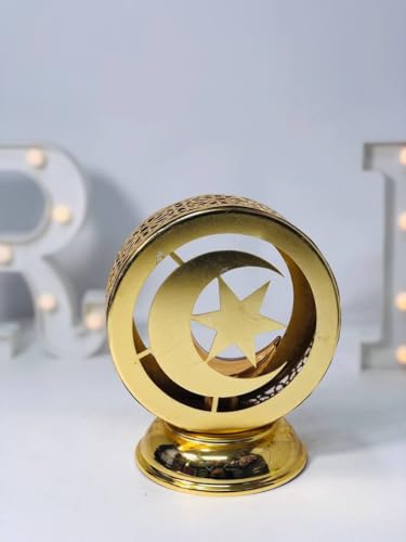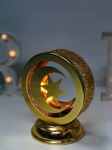 Generic - فانوس مزخرف على شكل قمر ونجوم بإضاءة ليد، 20 سم، ذهبي معدني، نمط مصري