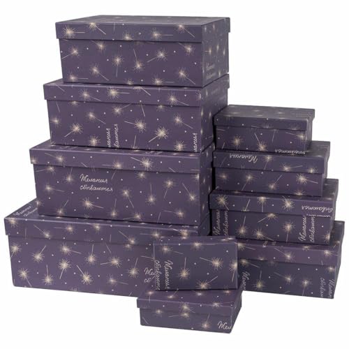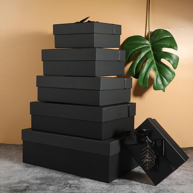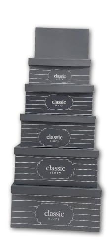 Generic - منظم ديكور - مجموعة صناديق هدايا متداخلة من 6 قطع بتصميم مخطط، حاويات تخزين قابلة للتكديس لمساحة خالية من الفوضى (رمادي)