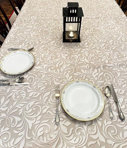 Generic - مفرش طاولة مزخرف للاستخدام الخارجي، تصميم مطبوع لتناول الطعام داخل المنزل وخارجه لجميع المناسبات لتجمعات الفطار في رمضان مقاس 1.4×2.5 متر (بيج)