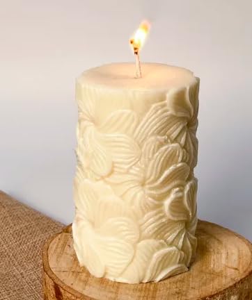 Generic - شمعة عمودية مزخرفة بنمط اوراق شجر، لون كريمي، ارتفاع 10 سم × عرض 6 سم، مزيج من شمع الصويا وشمع العسل والبارافين، 325 غرام