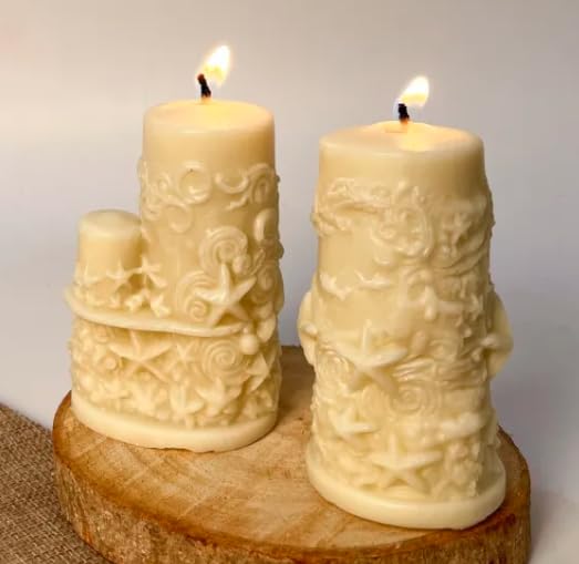 Generic - شموع عمودية مزخرفة بتصميم منقوش، مزيج من شمع الصويا وشمع العسل والبارافين، عاجي، مجموعة من قطعتين، 135 غرام و240 غرام