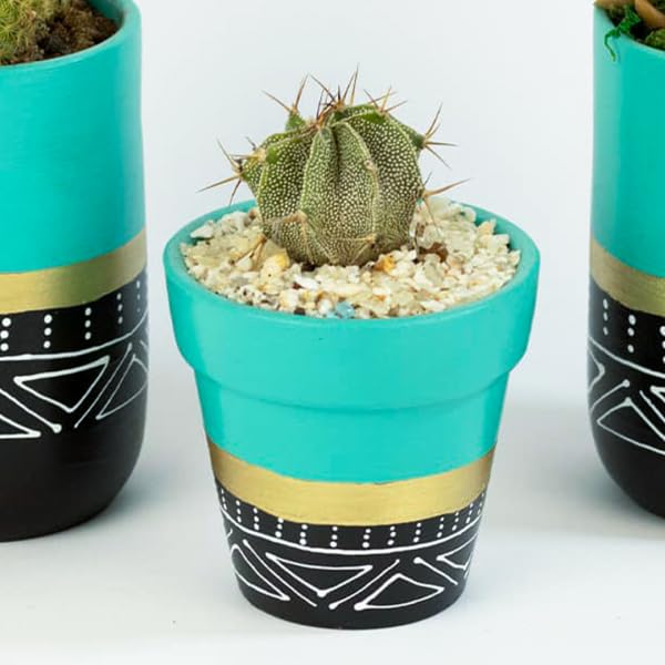 Generic - أصيص نباتات مزخرف بنمط قبلي مزين بشريط ذهبي، لون تركواز وأسود