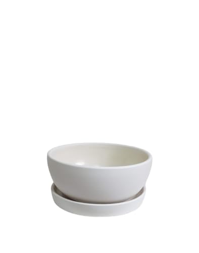 Generic - اوعية ديكور بيج مع طبق - لتزيين المكتب وديكور المنزل - نباتات داخلية طبيعية - صبار ونباتات عصارية - وعاء طيني 25 سم صلصال