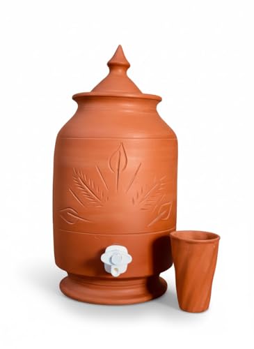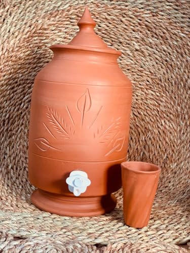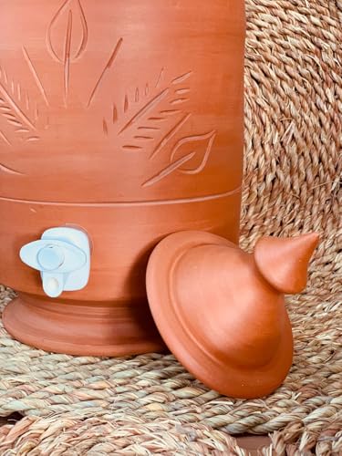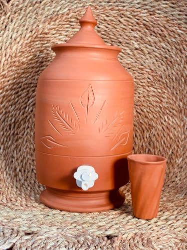 Generic - زير فخاري مزخرف مع كوب – خزان مياه طبيعي للحفاظ على برودة الماء