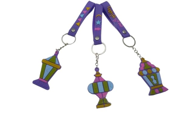 LC - طقم سلسلة مفاتيح بتصميم فانوس رمضان للديكور، 3 قطع من سلاسل مفاتيح اسلامية بلون ارجواني، تصميم عربي ملون