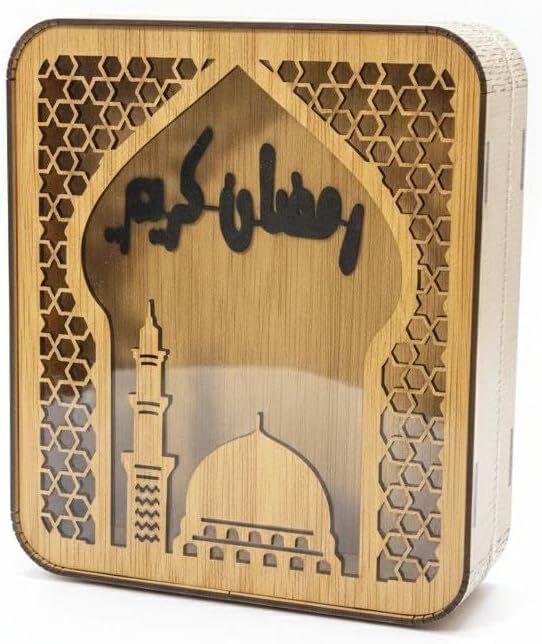 - فانوس رمضان مزخرف، مصباح زينة رمضان، فوانيس ثلاثية الأبعاد، مصباح ديكور إسلامي، فوانيس رمضان لتزيين طاولة غرفة النوم، هدايا رمضان 27 سم × 30 سم
