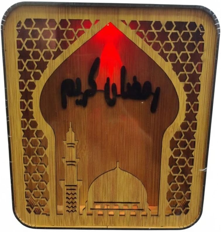 Generic - فانوس رمضان مزخرف، مصباح زينة رمضان، فوانيس ثلاثية الابعاد، مصباح ديكور اسلامي، فوانيس رمضان لتزيين طاولة غرفة النوم، هدايا رمضان 27 سم × 30 سم