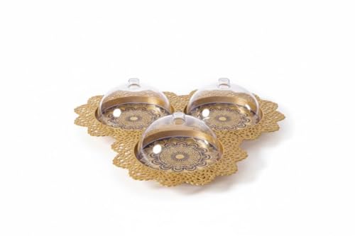 Generic - مجموعة تقديم مزخرفة من الاكريليك مع قبة، نمط دانتيل ذهبي، 3 فتحات، تصميم مزخرف متعدد الالوان
