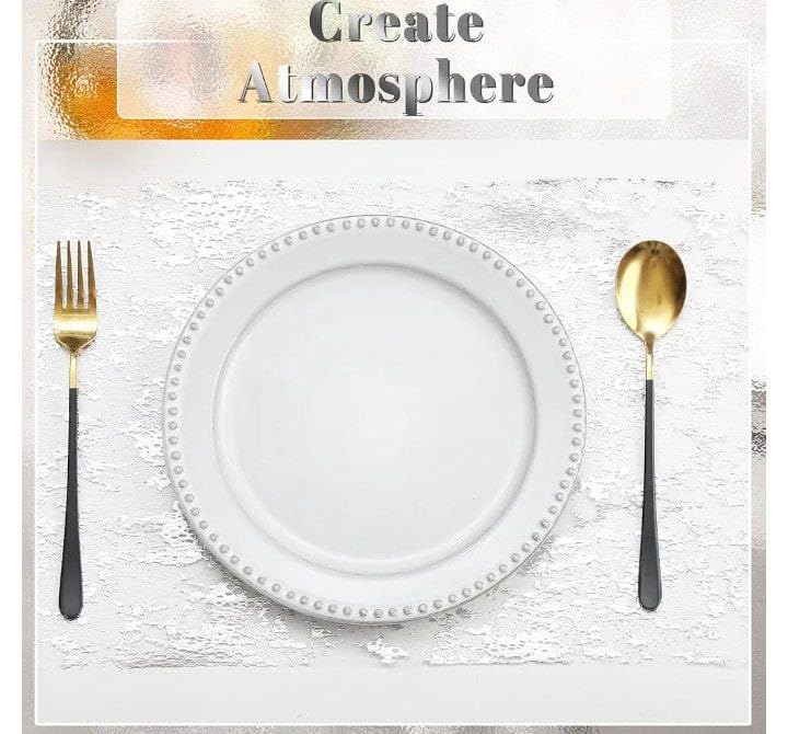 - خامة عالية الجودة: مصنوع من قماش شبكي عالي الجودة مع لمسة نهائية فضية مبهرة، يوفر مفرش الطاولة هذا متانة فائقة ولمعانًا يدوم طويلاً ومقاوم للتآكل والتمزق، مما يضمن أن ديكور طاولتك يبدو أنيقًا لسنوات. مثالية للاستخدام اليومي أو المناسبات الخاصة.