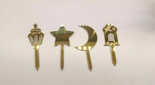 Generic - معالق مزخرفة بتصميم هلال ونجوم مصنوع من الأكريليك مع ظهر خشب ومناسبة للحلويات الرمضانية والكنافة، مجموعة مكونة من 4 قطع بأشكال مختلفة