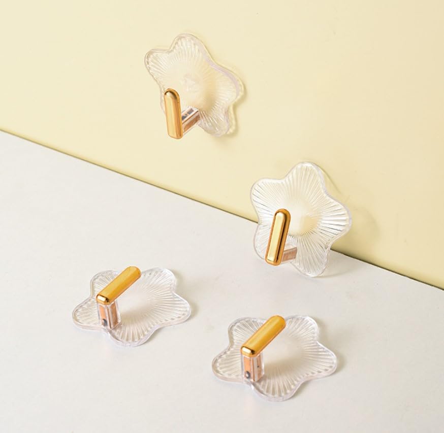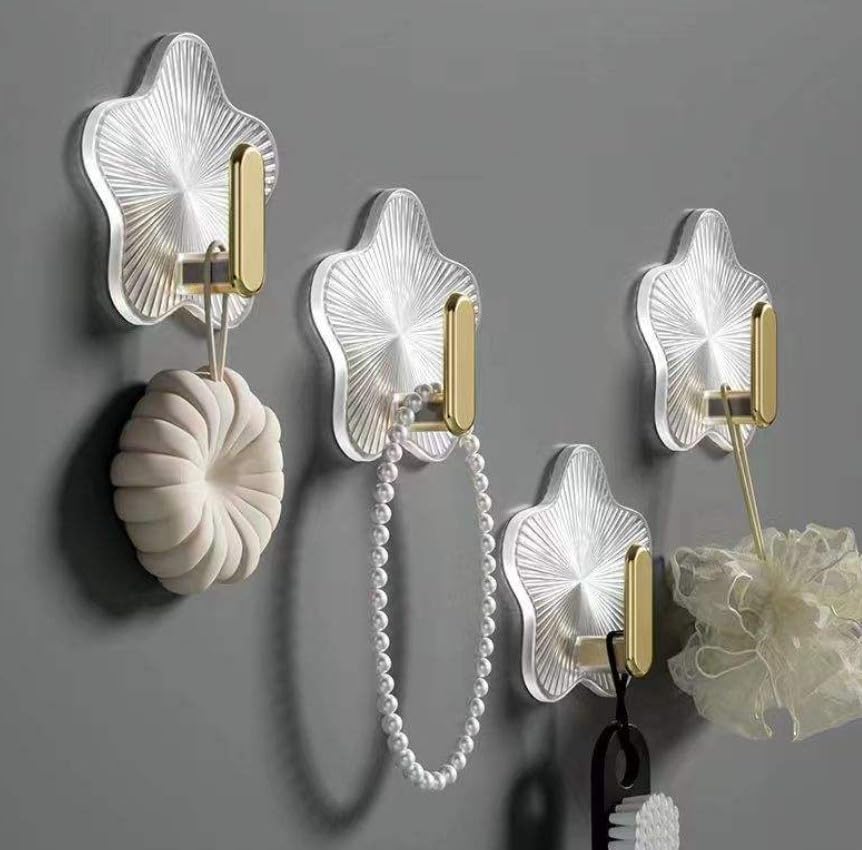 - مزايا التصميم: خطافات حائط اكريليك شفافة على شكل نجمة مع لمسات ذهبية أنيقة، مما يضفي مظهرًا عصريًا وراقيًا لجدرانك.