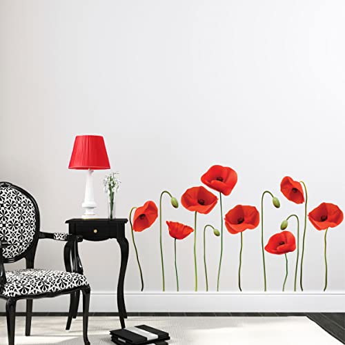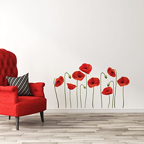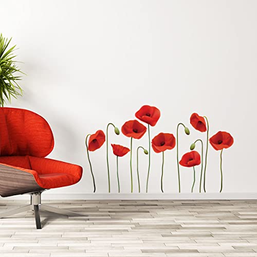 Generic - ستيكر لاصق للزينة - زهرة الخشخاش الحمراء (60x70 سم)