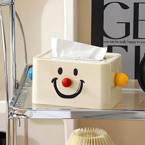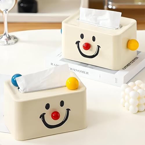Generic - تخزين ديكور - غطاء علبة مناديل بتصميم وجه مبتسم مع انف احمر وألوان زاهية، حامل بلاستيكي مستطيل للتنظيم المنزلي