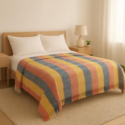 Generic - بطانية ديكور مخططة للسرير بنقشة بخطوط شيفرون وحافة بشراشيب متعددة الألوان مع خطوط (متعددة الألوان 6)