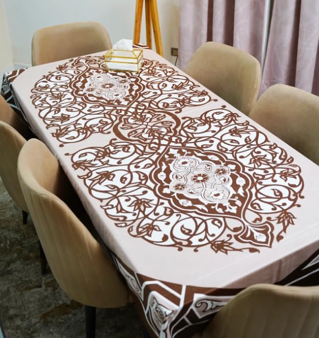 Generic - مفرش طاولة مزخرف بنمط ميدالية مزخرفة، بني وابيض، قماش مخملي ناعم، متوفر بمقاسات متعددة (90 × 90 سم الى 140 × 280 سم) (140 × 240)