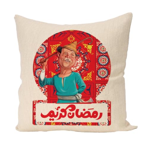 Generic - غطاء وسادة ديكوري، بيج، بطابع رمضان العربي، تصميم شخصيات تقليدية، مقاس (40 × 40)