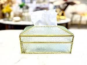 - تصميم أنيق: مصنوع من زجاج متين مع غطاء ذهبي اللون، يضفي صندوق المناديل هذا لمسة من الأناقة على أي غرفة في المنزل.