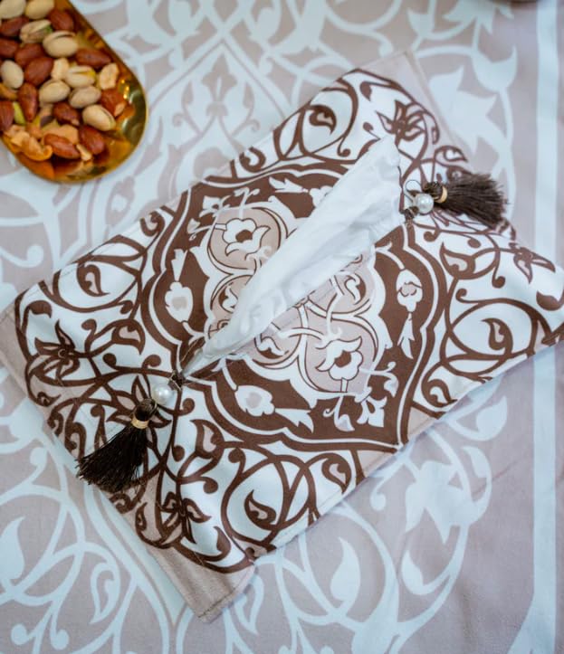 - تفاصيل الشرابة المزخرفة: مزينة بلمسات شرابة ساحرة في الزوايا تعزز المظهر الجمالي المتطور لحامل المناديل هذا